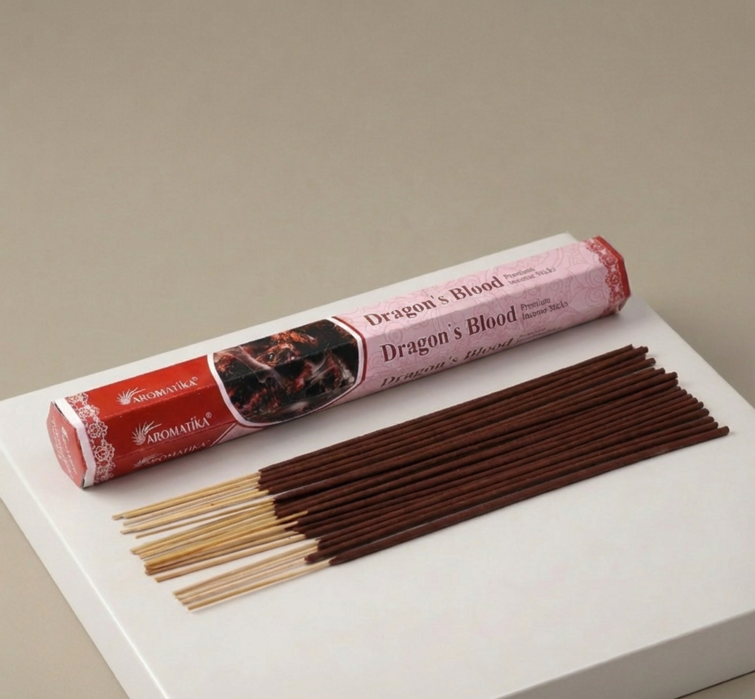 „Dragon’s Blood“ (Drakono kraujas) – tai gilus, sakralus ir mistiškas aromatas, vertinamas dėl savo savybių valyti erdvę bei stiprinti koncentraciją. Šie „Aromatika“ smilkalai gaminami Indijoje rankomis, naudojant tradicinį medžio miltelių, natūralių dervų ir eterinių aliejų derinį.