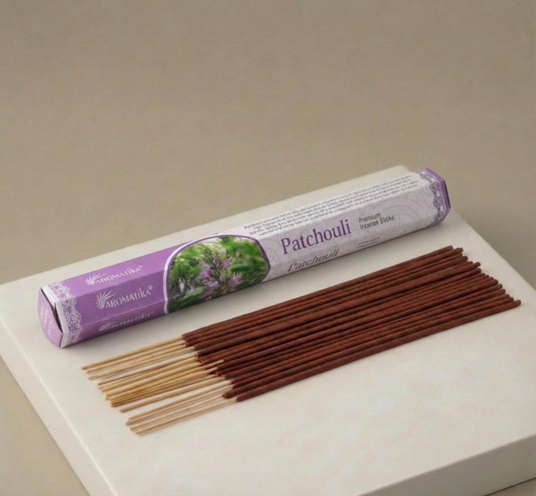 Pačiuliai – tai nesenstanti smilkalų klasika, pasižyminti sodriu, žemišku ir šiek tiek saldžiu medienos aromatu. Šie „Aromatika“ smilkalai gaminami rankomis Indijoje, naudojant tradicinį natūralių medžio miltelių, dervų ir grynųjų eterinių aliejų derinį. Pačiulių kvapas nuo seno vertinamas dėl gebėjimo mažinti įtampą, gerinti nuotaiką ir padėti susikaupti.