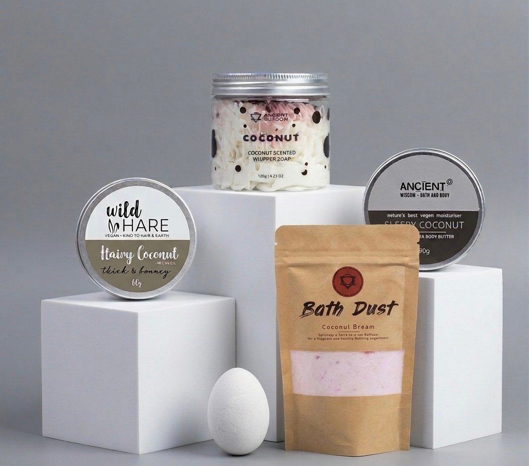 Pasinerkite į tikrą egzotiškų atostogų nuotaiką su „Coconut“ rinkiniu. Švelnus, šiltas kokosų aromatas ir kruopščiai parinktos priemonės padės sukurti atpalaiduojantį SPA ritualą namuose – nuo vonios iki kasdienės kūno ir plaukų priežiūros.
